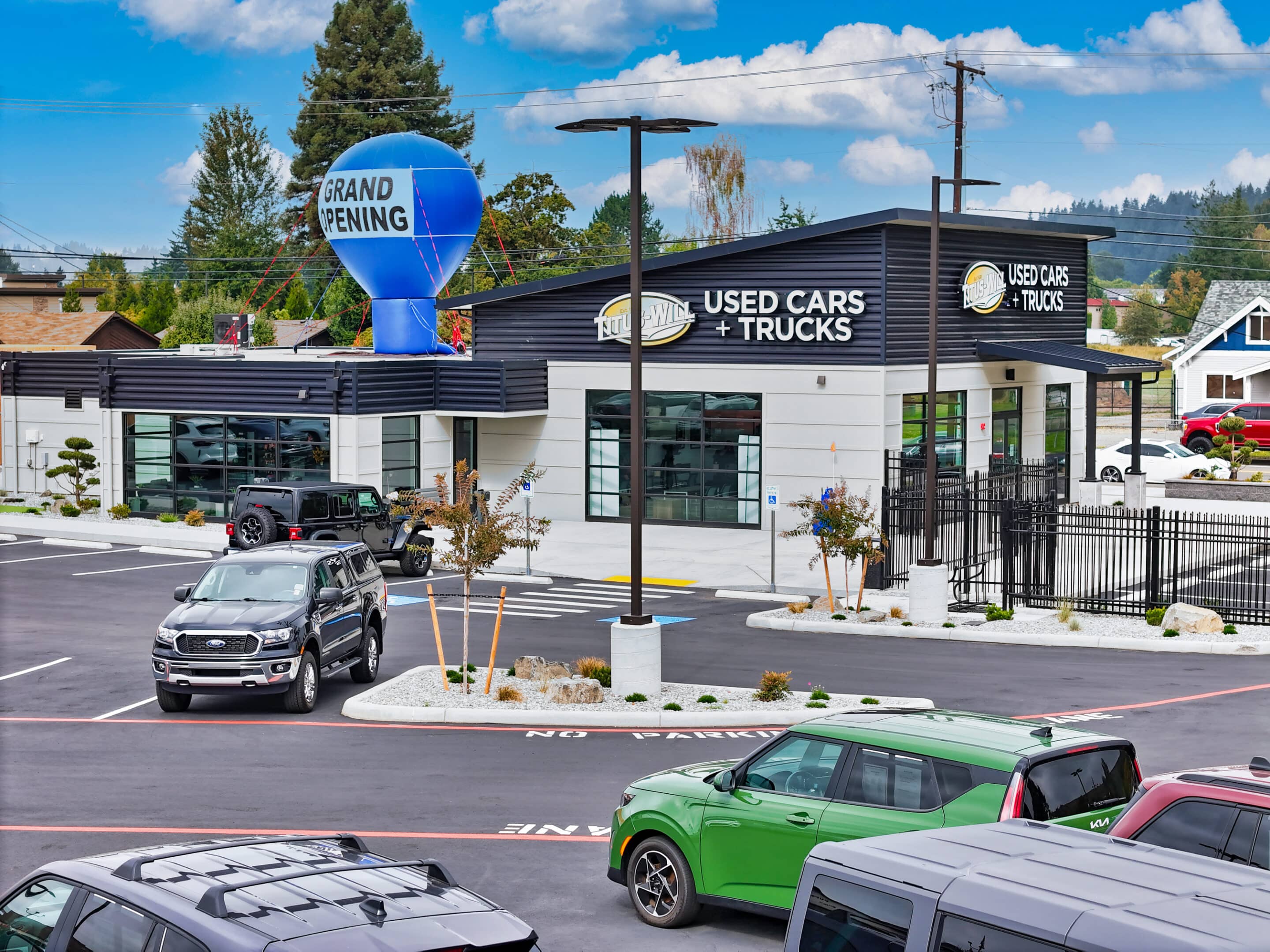 HHJ Architecture & Construction partnered with Titus-Will to deliver a modern, high-functioning automotive facility in Sumner, Washington. Located on a 5-acre site, the new dealership for used cars and trucks aligns with the Titus-Will brand and accommodates approximately 350 vehicles. The project includes a 4,000-square-foot sales building paired with a dedicated detail shop.